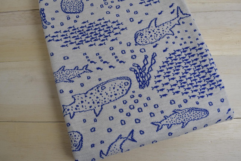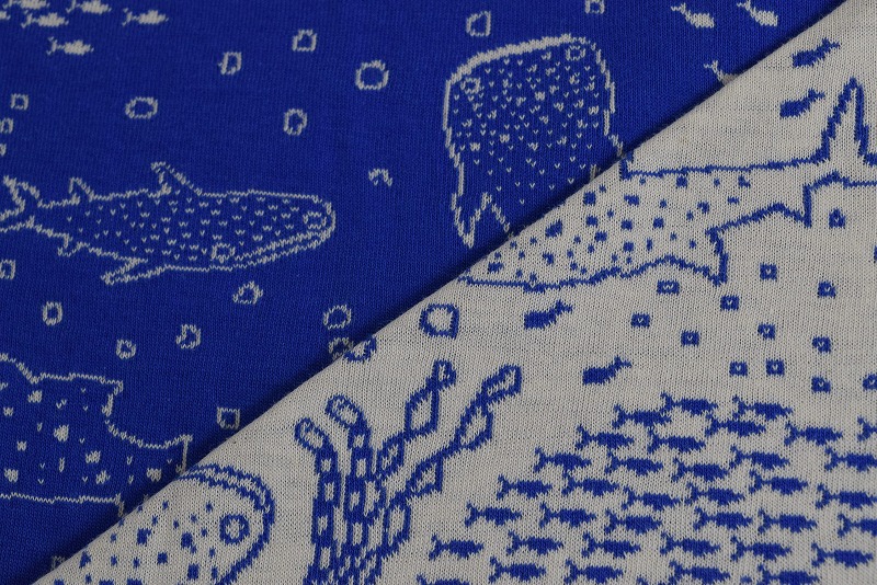 リバーシブルジャガードニット生地 ジンベイザメ柄                   色:ブルー/アイボリー