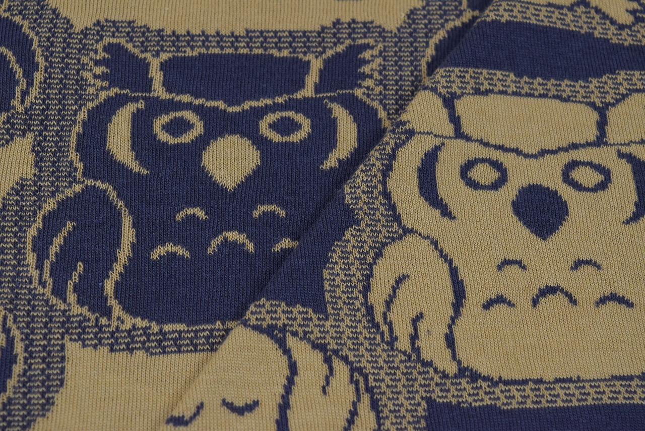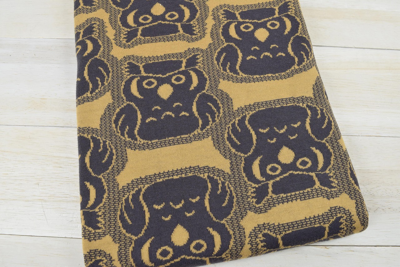 リバーシブルジャガードニット生地 みみずく柄           色:エボニー/マスタード