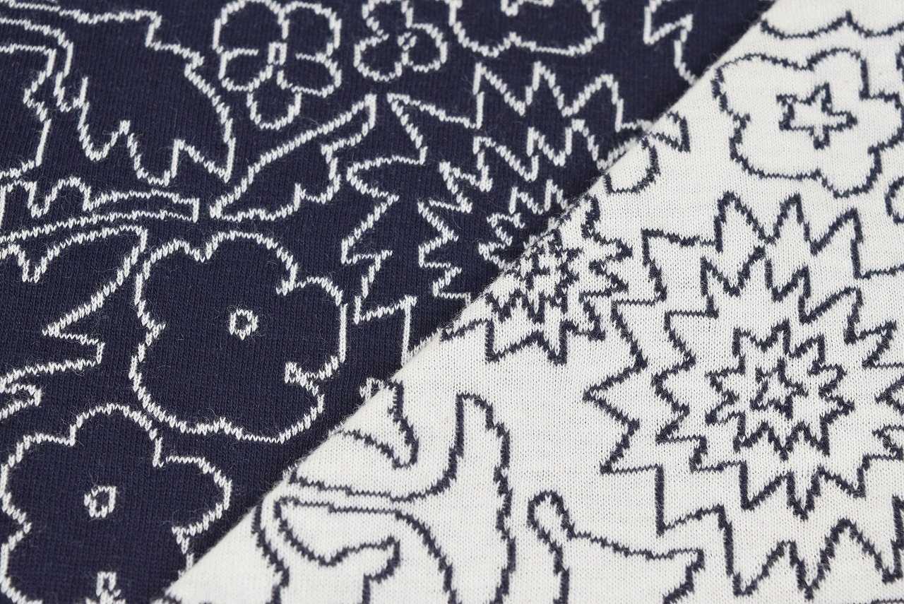 リバーシブルジャガードの接結ニット生地です。