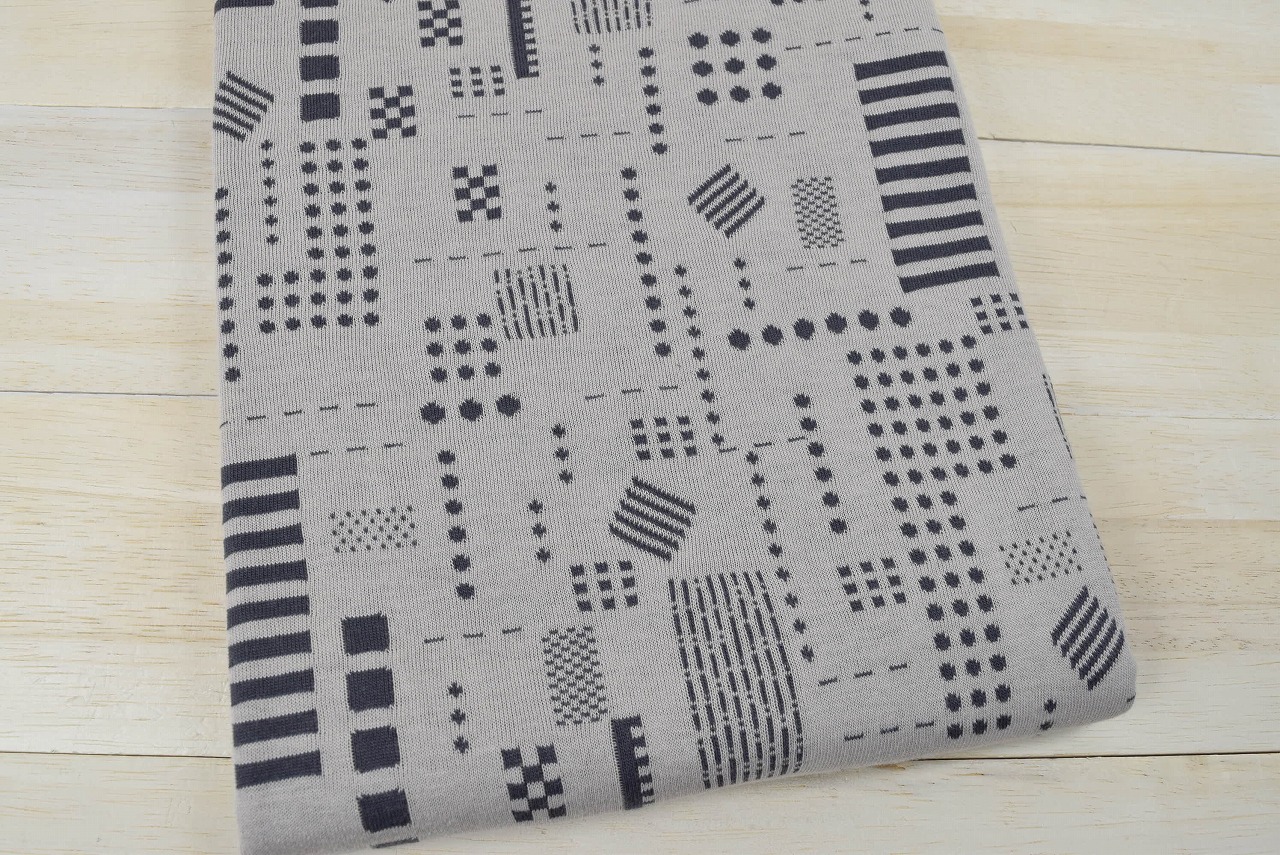 リバーシブルジャガードニット生地 パーティクル柄           色:エボニー/カシミヤ