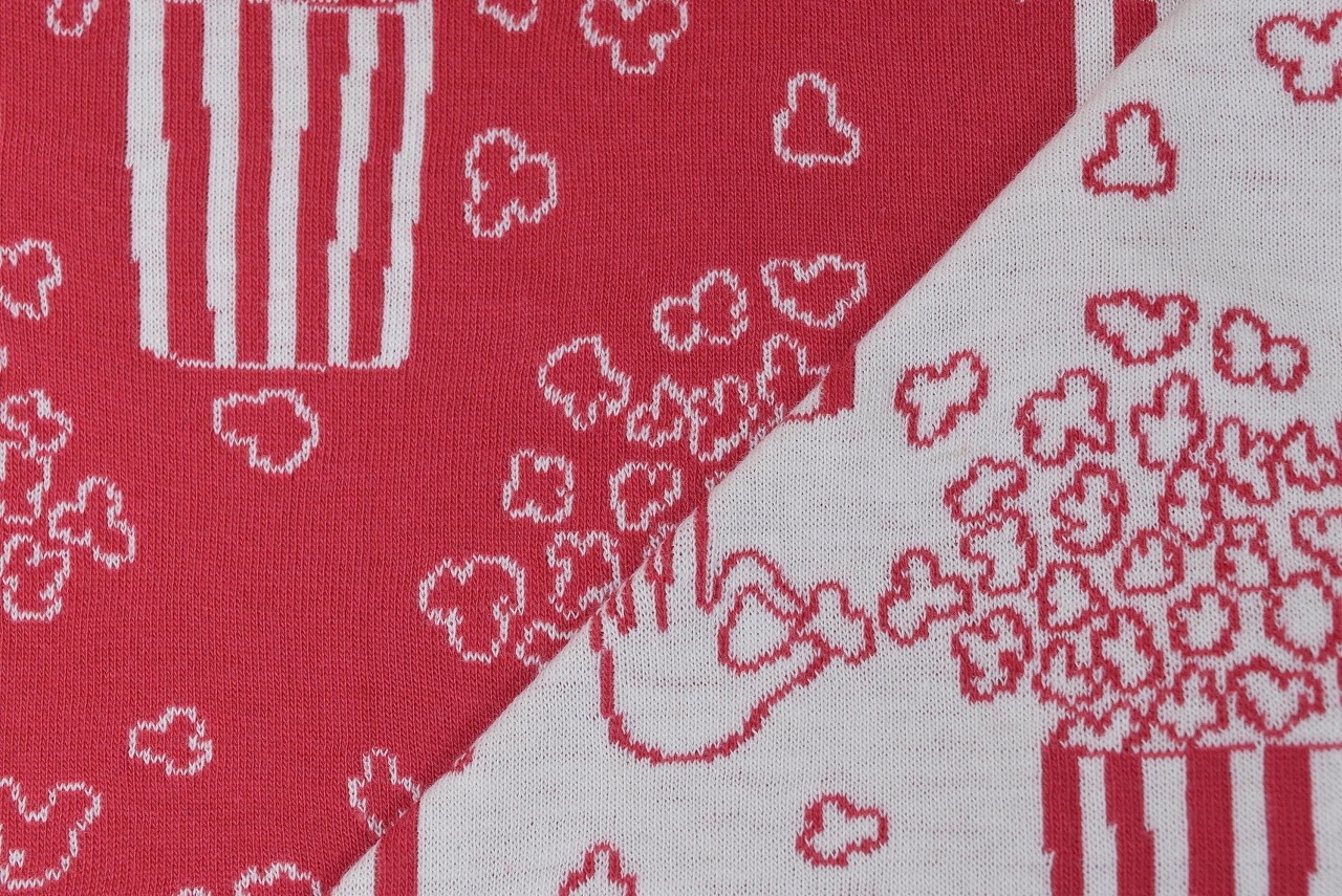 リバーシブルジャガードニット生地 ポップコーン柄             色:ルージュ/アイボリー