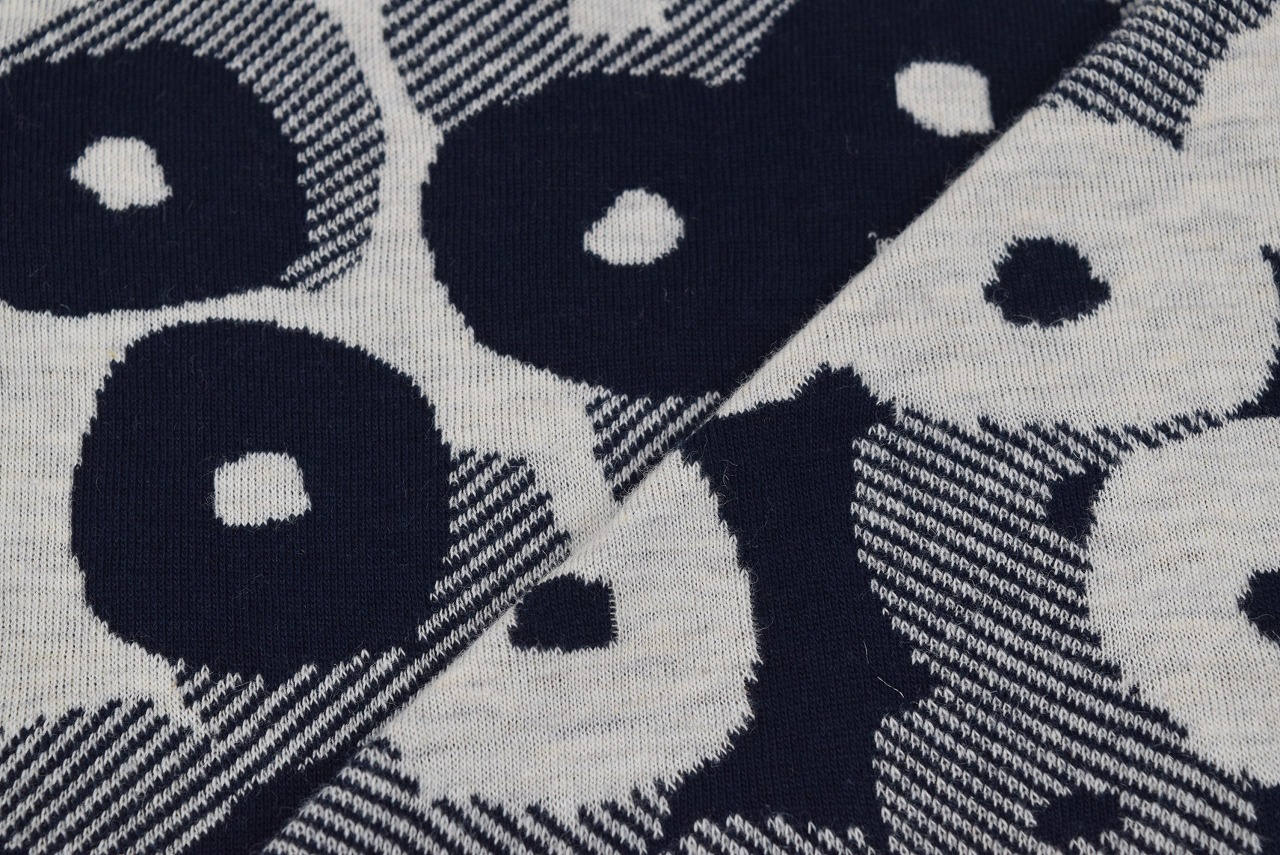 リバーシブルジャガードニット生地 デイジー柄 麻混        色:ネイビー/杢カシミヤ