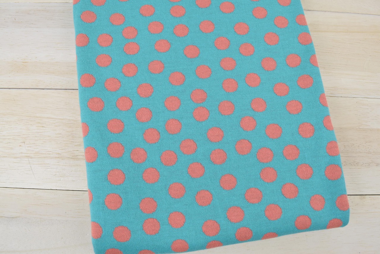 リバーシブルジャガードニット生地 ドロップキャンディ柄              色:エメラルド/フラミンゴ