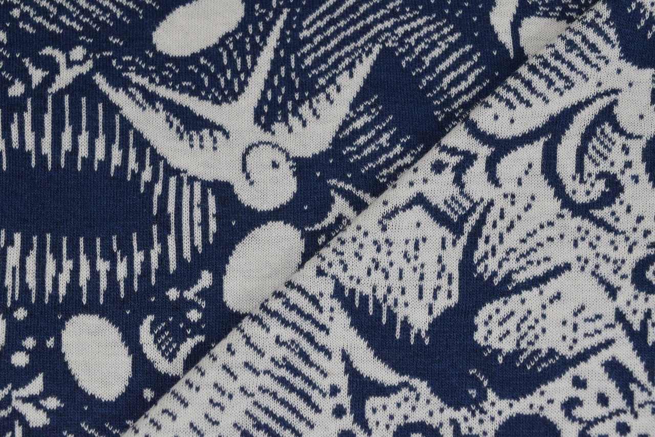 リバーシブルジャガードニット生地 スワロウ柄                色:ダルブルー/アイボリー