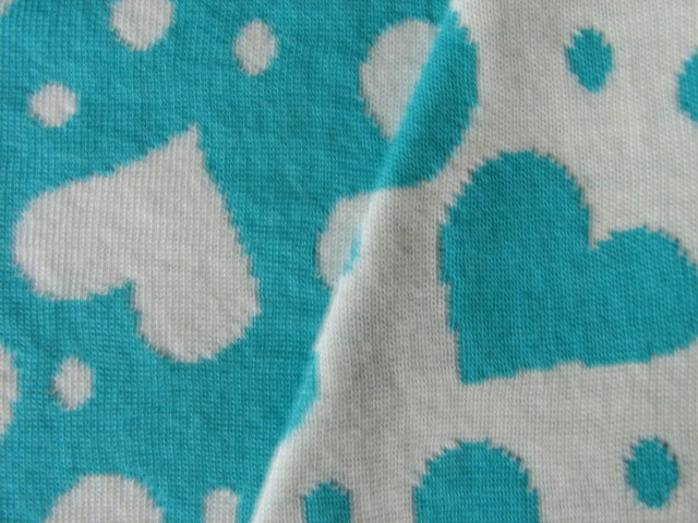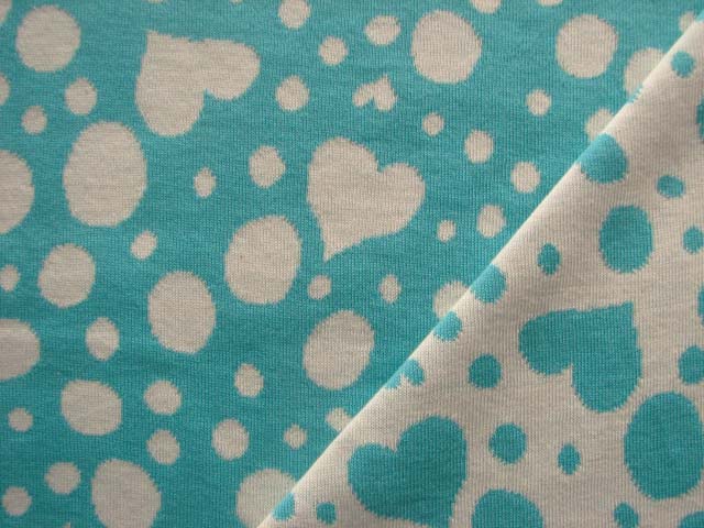リバーシブルジャガードニット生地 マシュマロハート柄          色:エメラルド/アイボリー