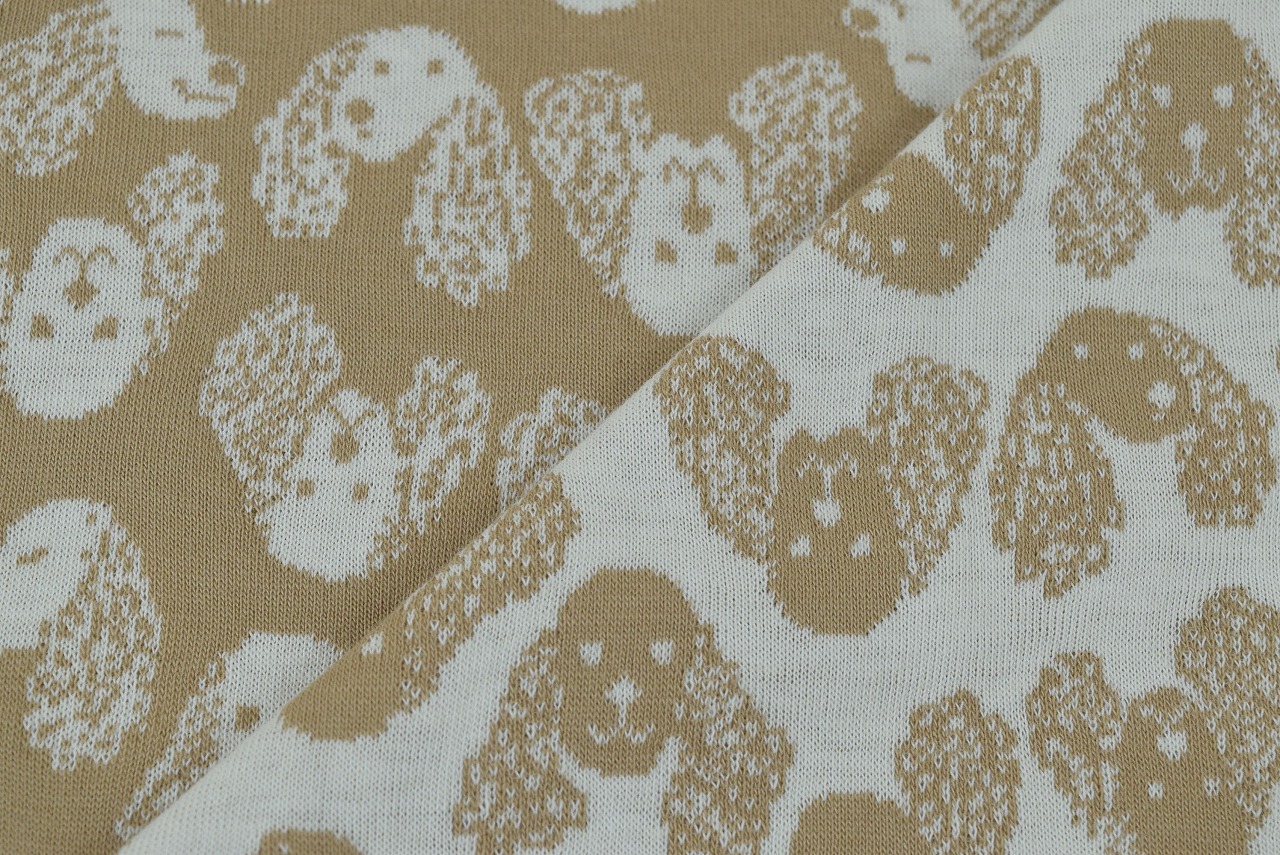 リバーシブルジャガードニット生地 フロッピーイヤー柄              色:キャメル/アイボリー