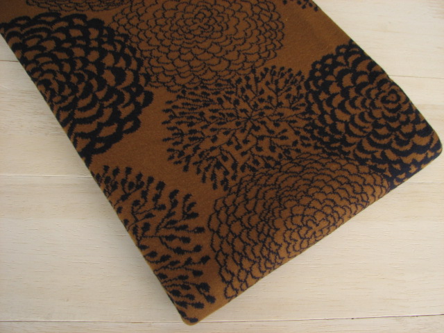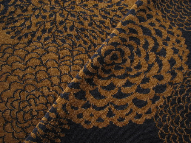 リバーシブルジャガードニット生地 ダリア柄               色:ネイビー/シナモン