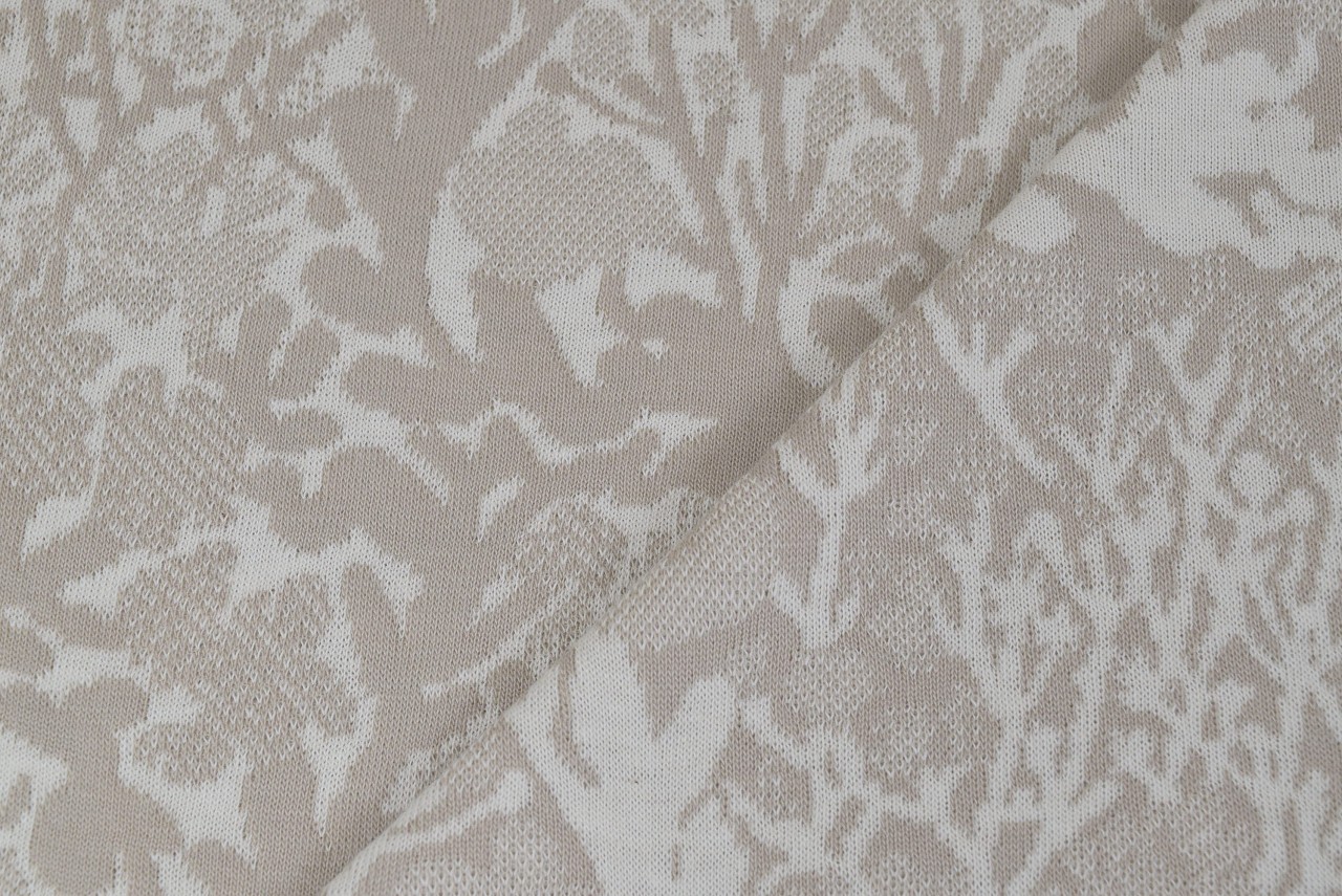 リバーシブルジャガードニット生地 ウィード柄             色:カシミヤ/アイボリー