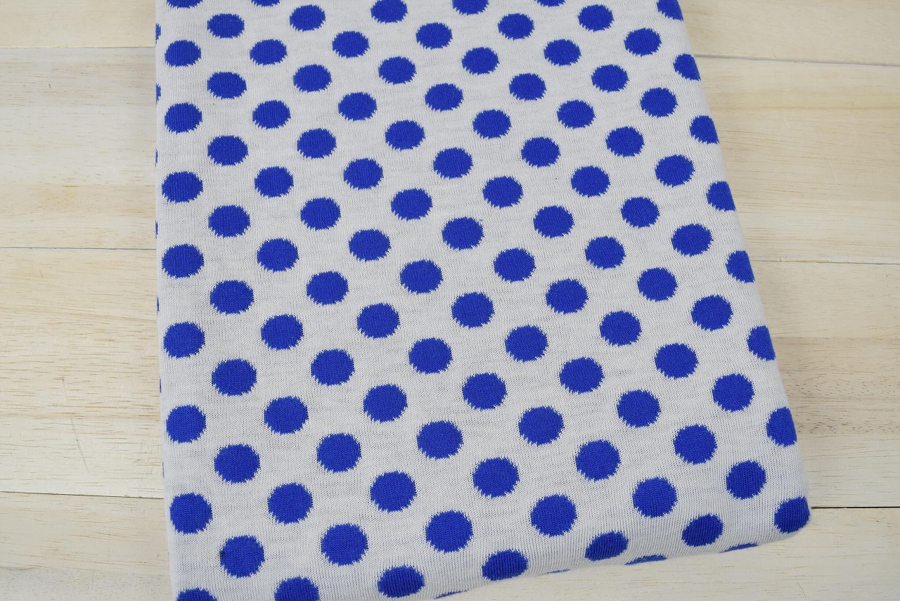 リバーシブルジャガードニット生地 ベーシックドット柄        色:ブルー/アイボリー