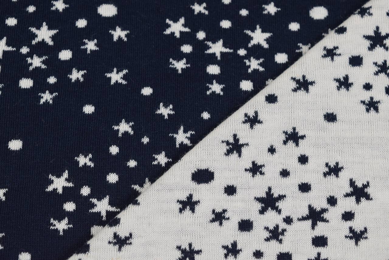 大小の星とドットをちりばめた接結のリバーシブルニット生地です。