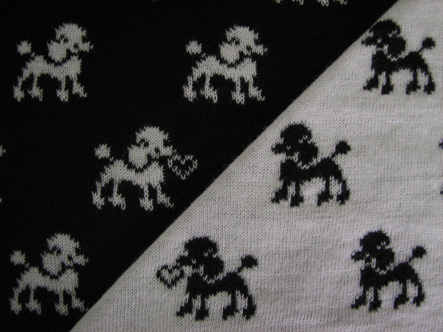 リバーシブルジャガードニット生地 プードル柄            色:黒/アイボリー
