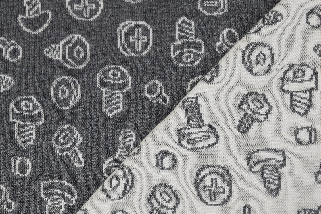 リバーシブルジャガードニット生地 ねじ柄          色:ダーク杢グレー/アイボリー