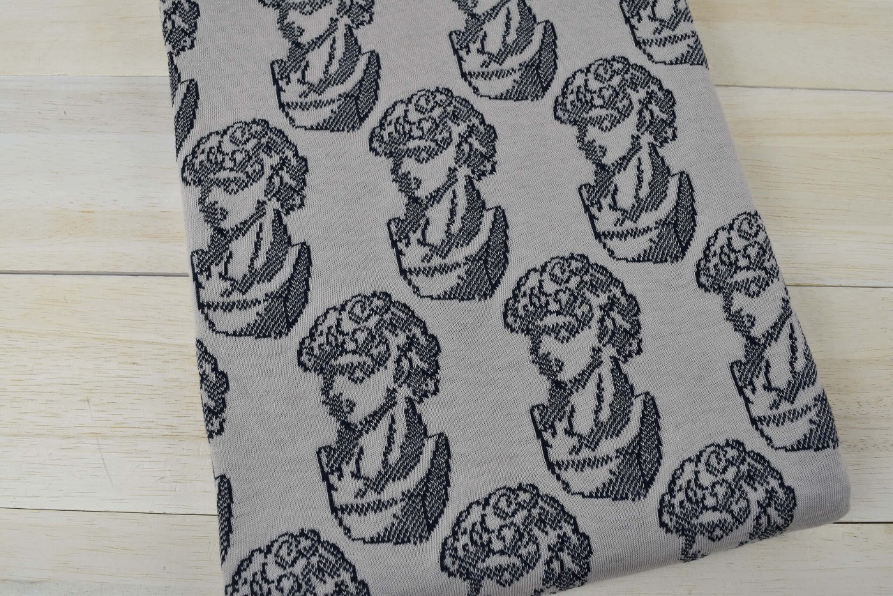 リバーシブルジャガードニット生地 アポロ柄            色:ネイビー/カシミヤ