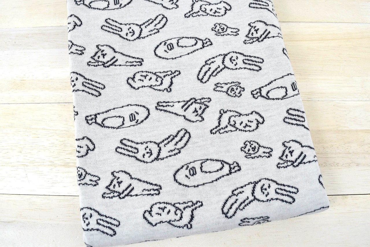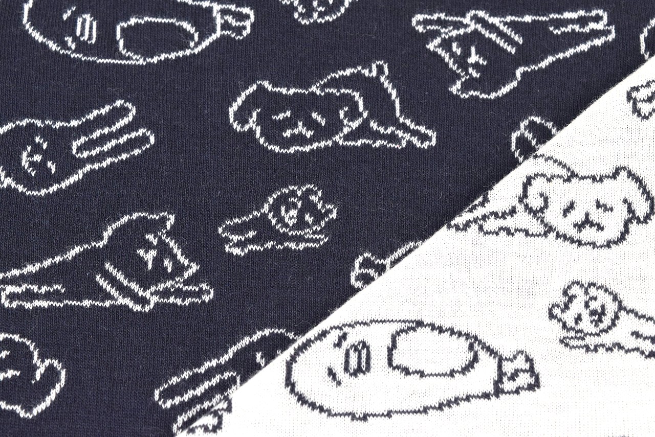リバーシブルジャガードニット生地 〈くしゃかわ×maffon〉あたまからっぽたいけつ柄         色:ダークチャコール/アイボリー