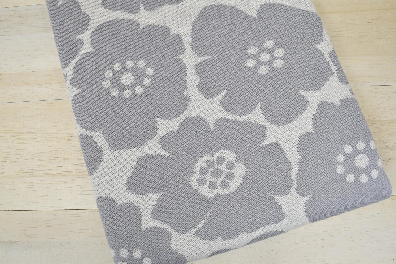 リバーシブルジャガードニット生地 アネモネ柄 色:アッシュ/アイボリー