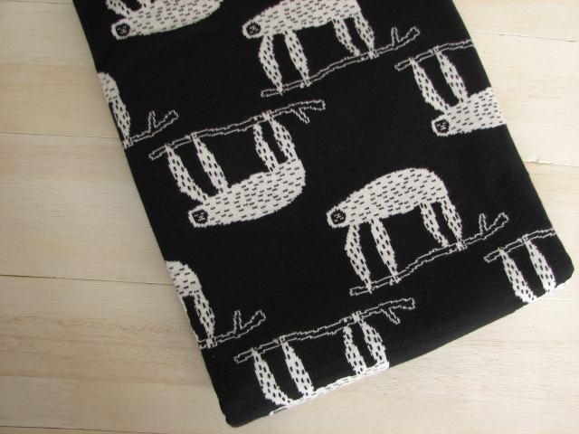 リバーシブルジャガードニット生地 なまけもの柄 色:黒/アイボリー