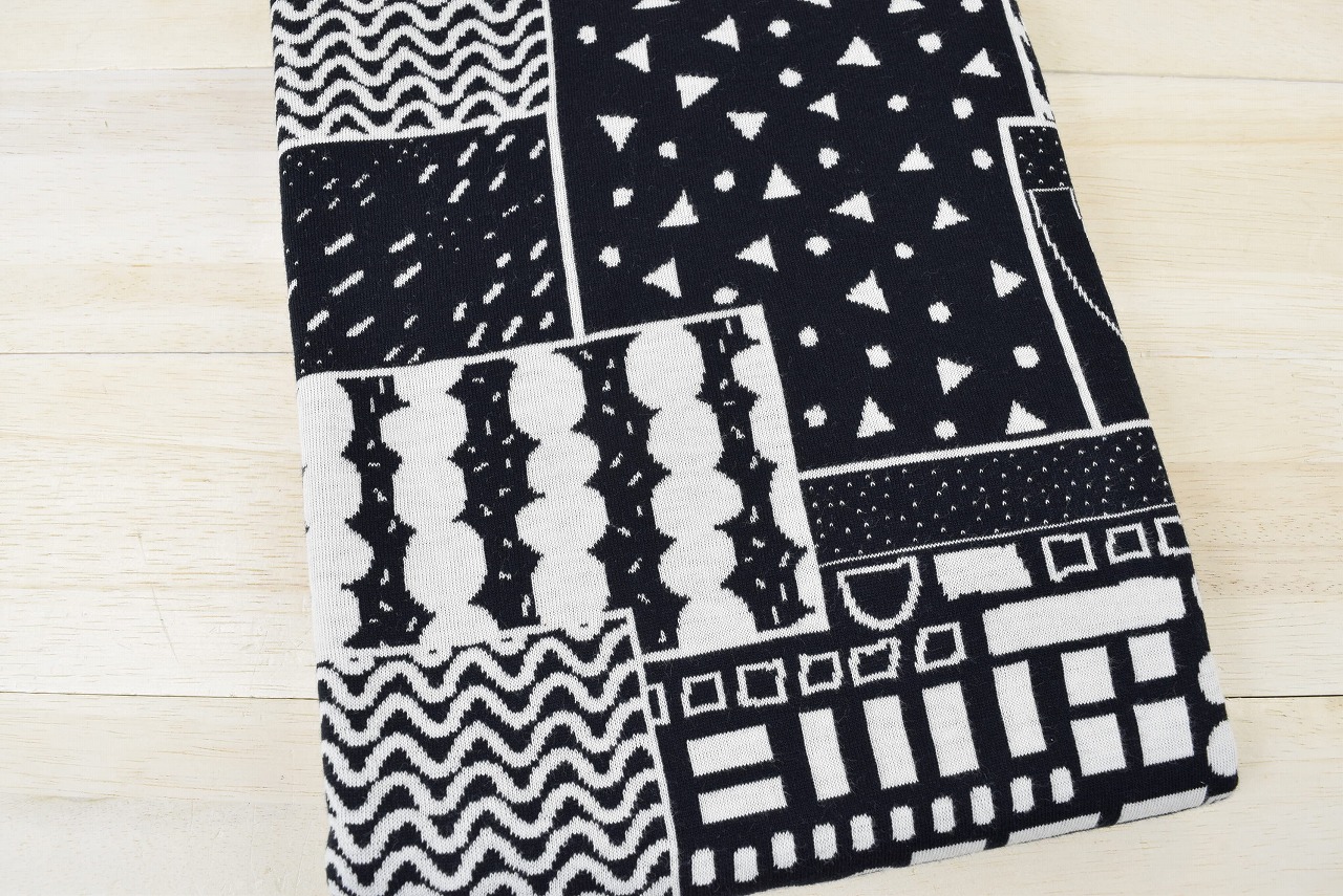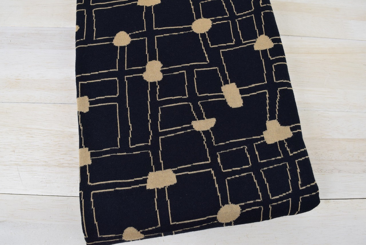 リバーシブルジャガードニット生地 〈KIM HONO×maffon〉位置柄 色:黒/アイボリー