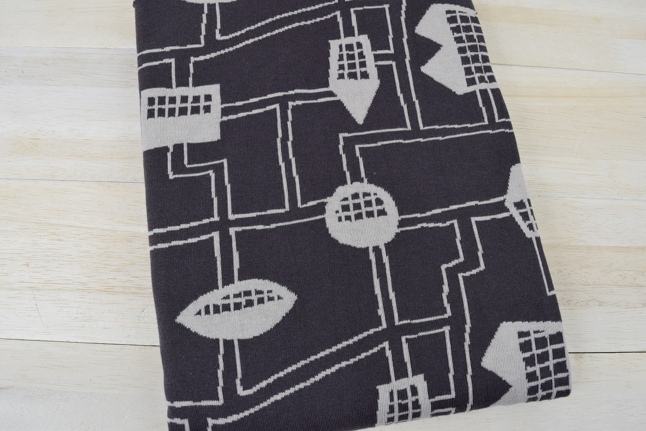 リバーシブルジャガードニット生地 〈KIM HONO×maffon〉路地柄 色:黒/くるみ