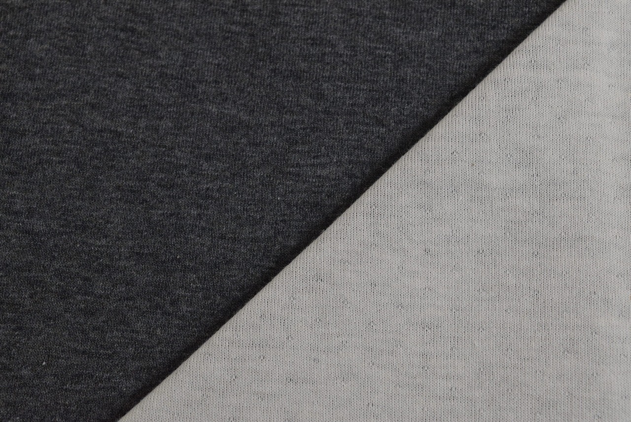 リバーシブルジャガードニット生地 無地×メッシュ 色:ダーク杢グレー/アイボリー