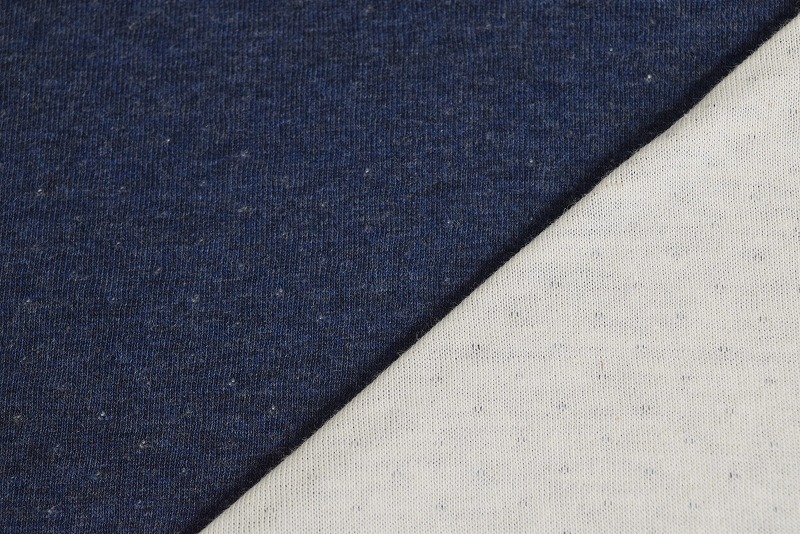 リバーシブルジャガードニット生地 無地×メッシュ 色:杢ネイビー/アイボリー
