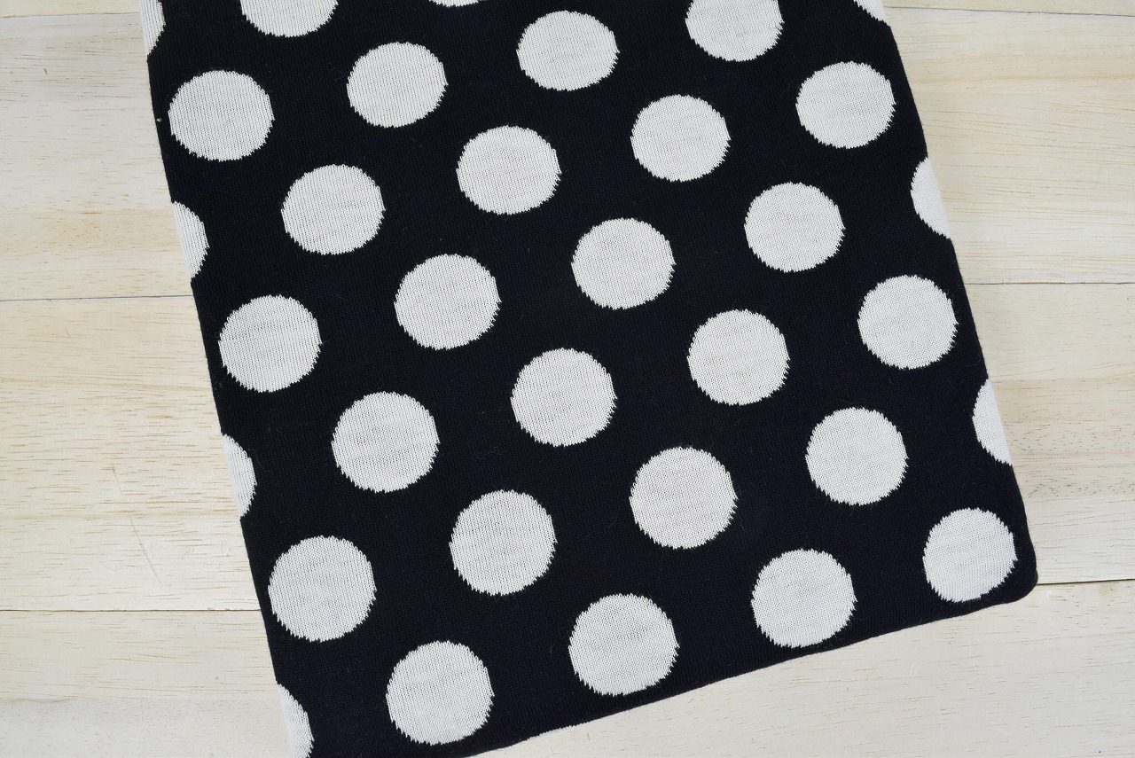 リバーシブルジャガードニット生地 しらたまドット柄 色:黒/アイボリー
