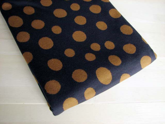 リバーシブルジャガードニット生地 バブルドット柄 色:ネイビー/シナモン