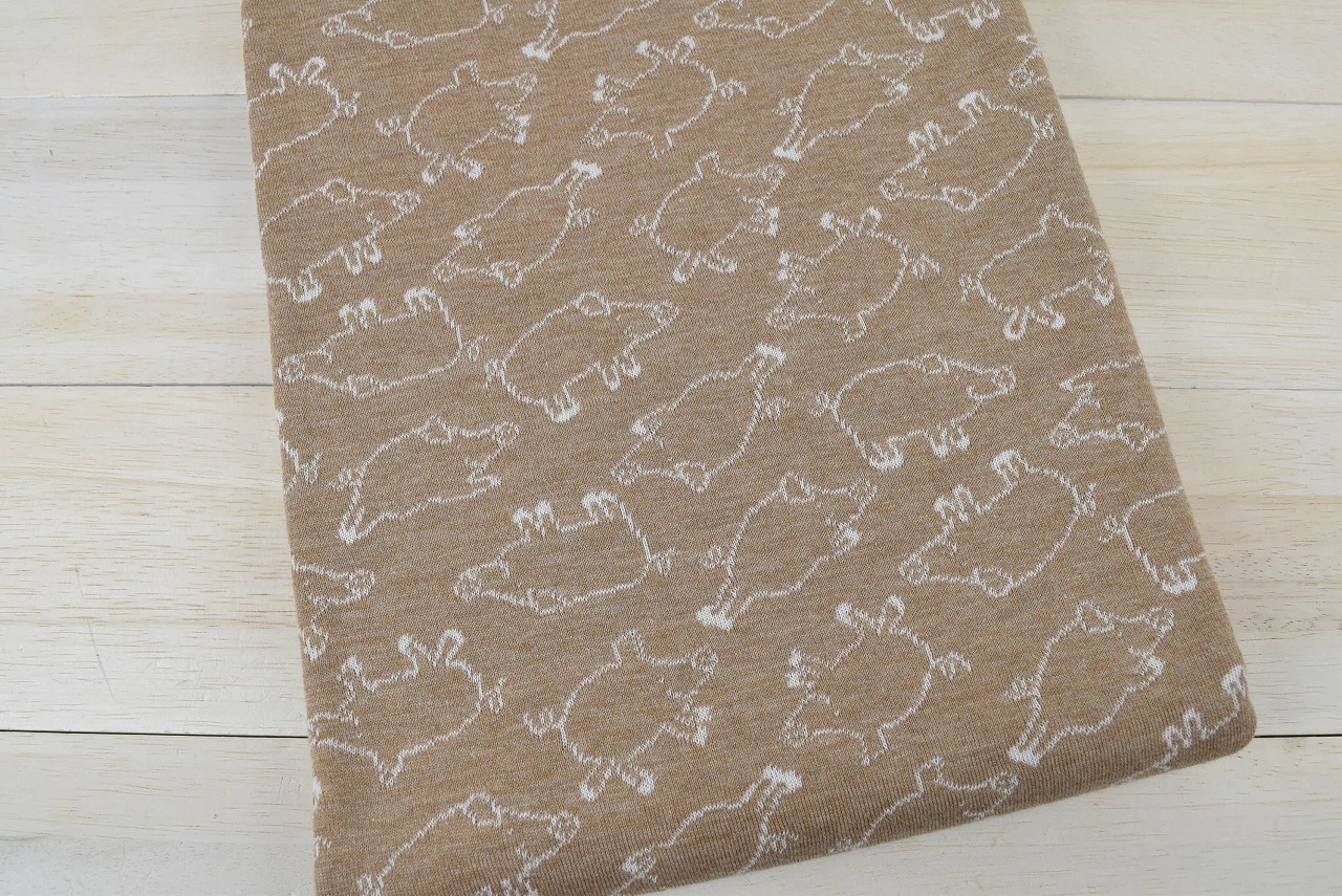 リバーシブルジャガードニット生地 ピグレット柄 色:杢キャメル/アイボリー