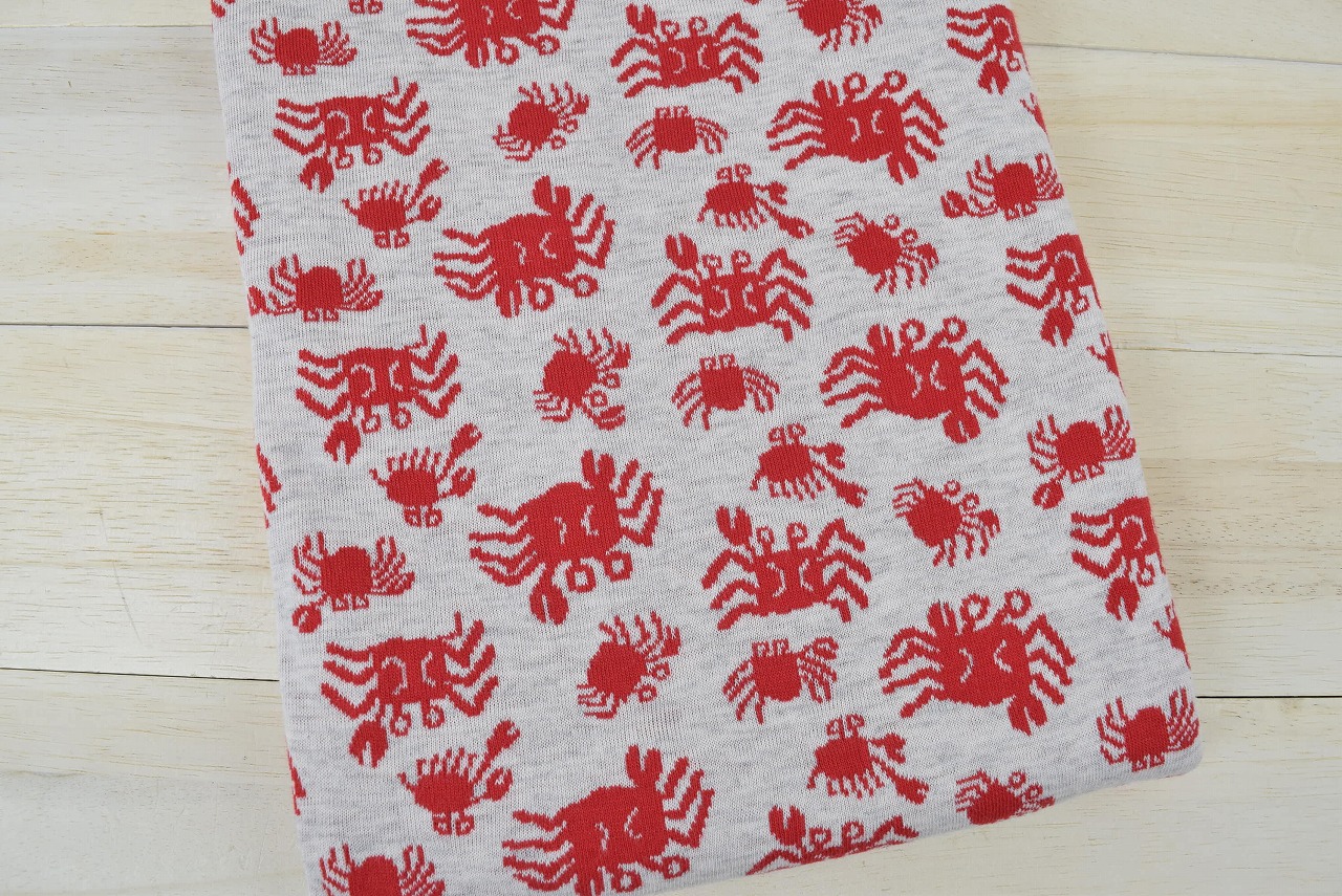 リバーシブルジャガードニット生地 かにダンス柄 色:アッシュ杢/レッド