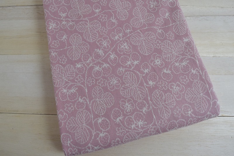 リバーシブルジャガードニット生地 ワイルドストロベリー柄 色:フレンチローズ/アイボリー