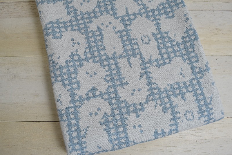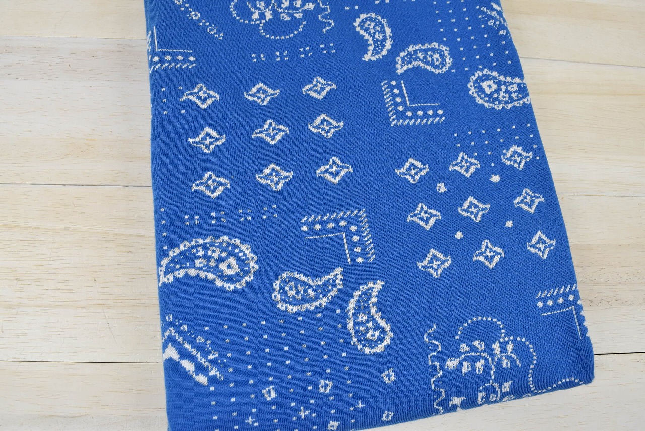 リバーシブルジャガードニット生地 バンダナ柄 色:ミディアムブルー/アイボリー