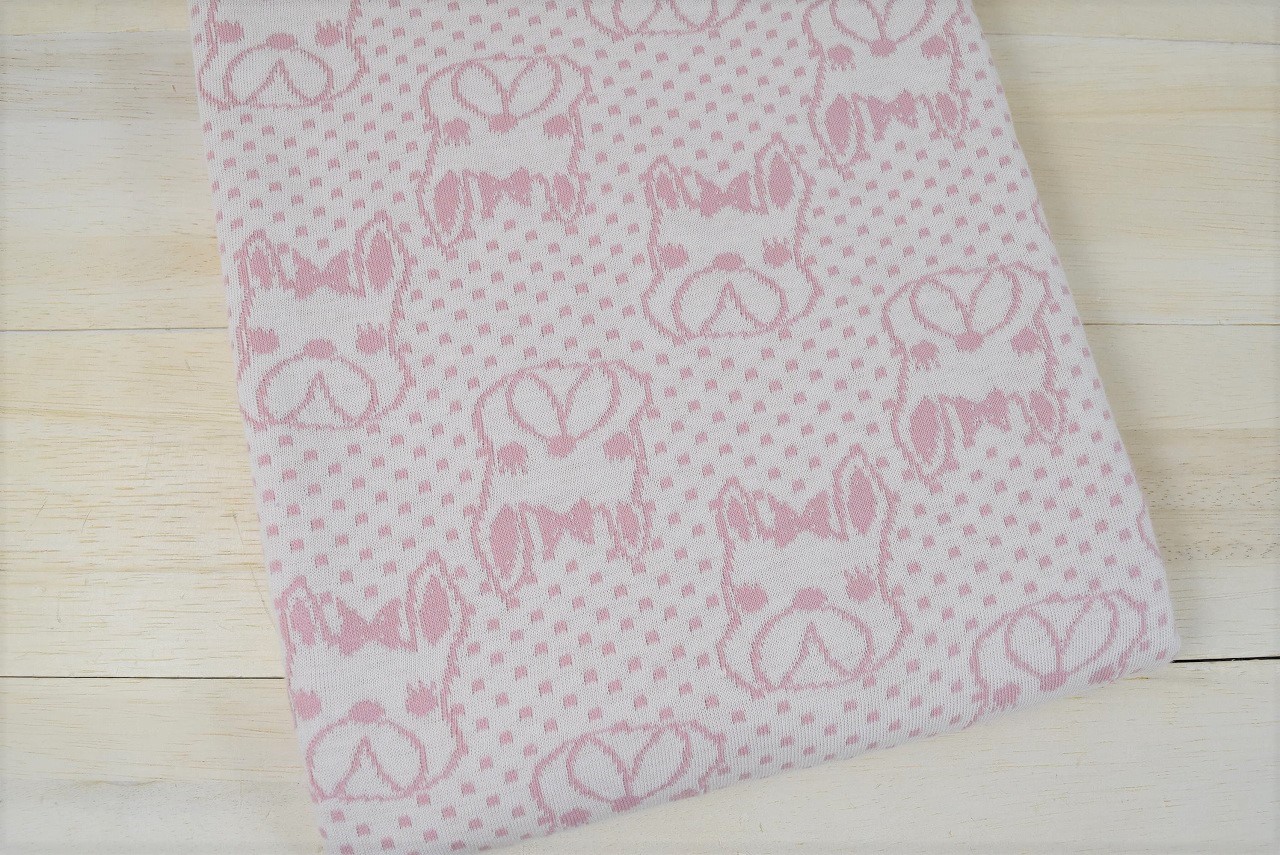 リバーシブルジャガードニット生地 リボンブル柄 色:フレンチローズ/アイボリー