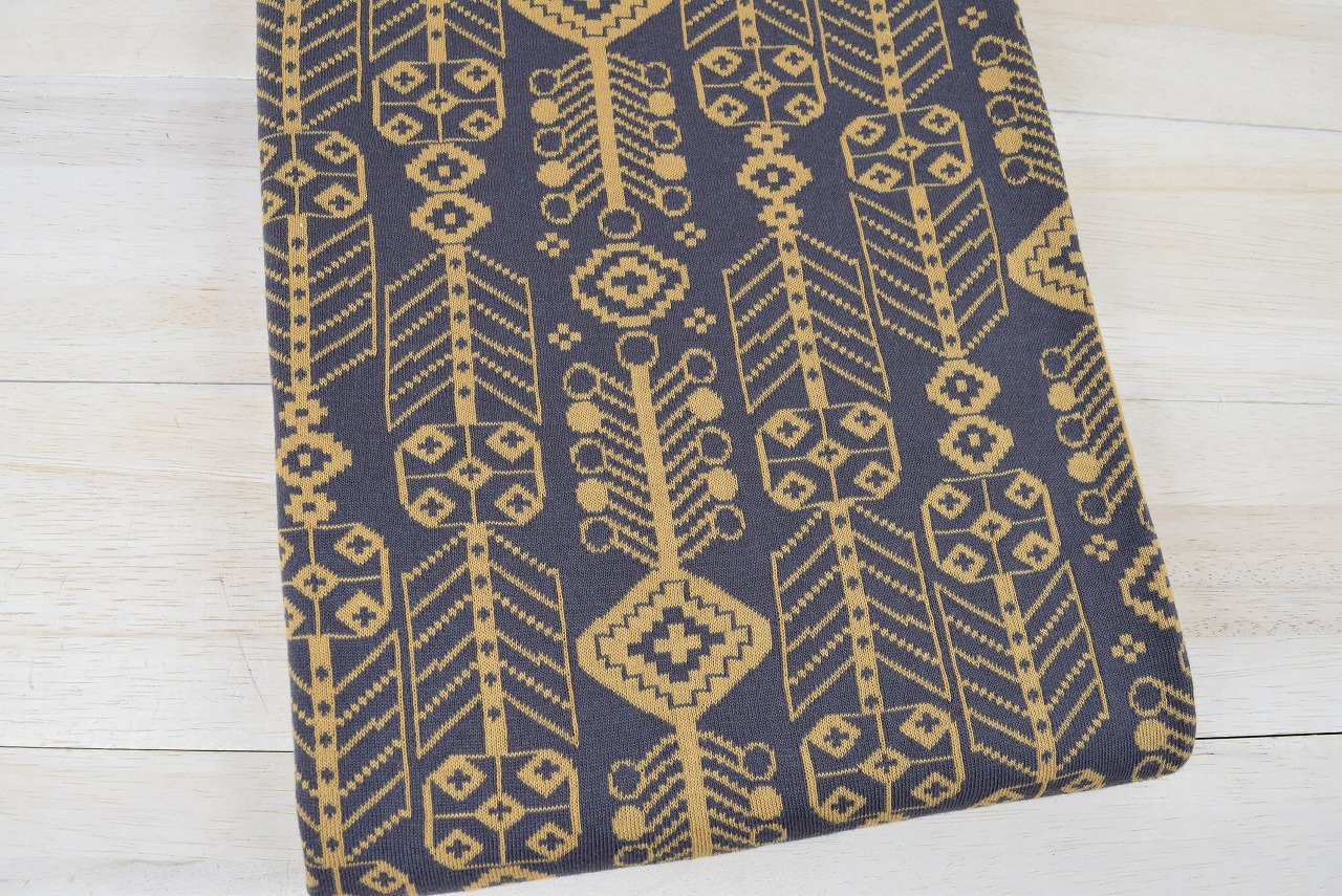 リバーシブルジャガードニット生地 バハル柄 色:チャコール/マスタード