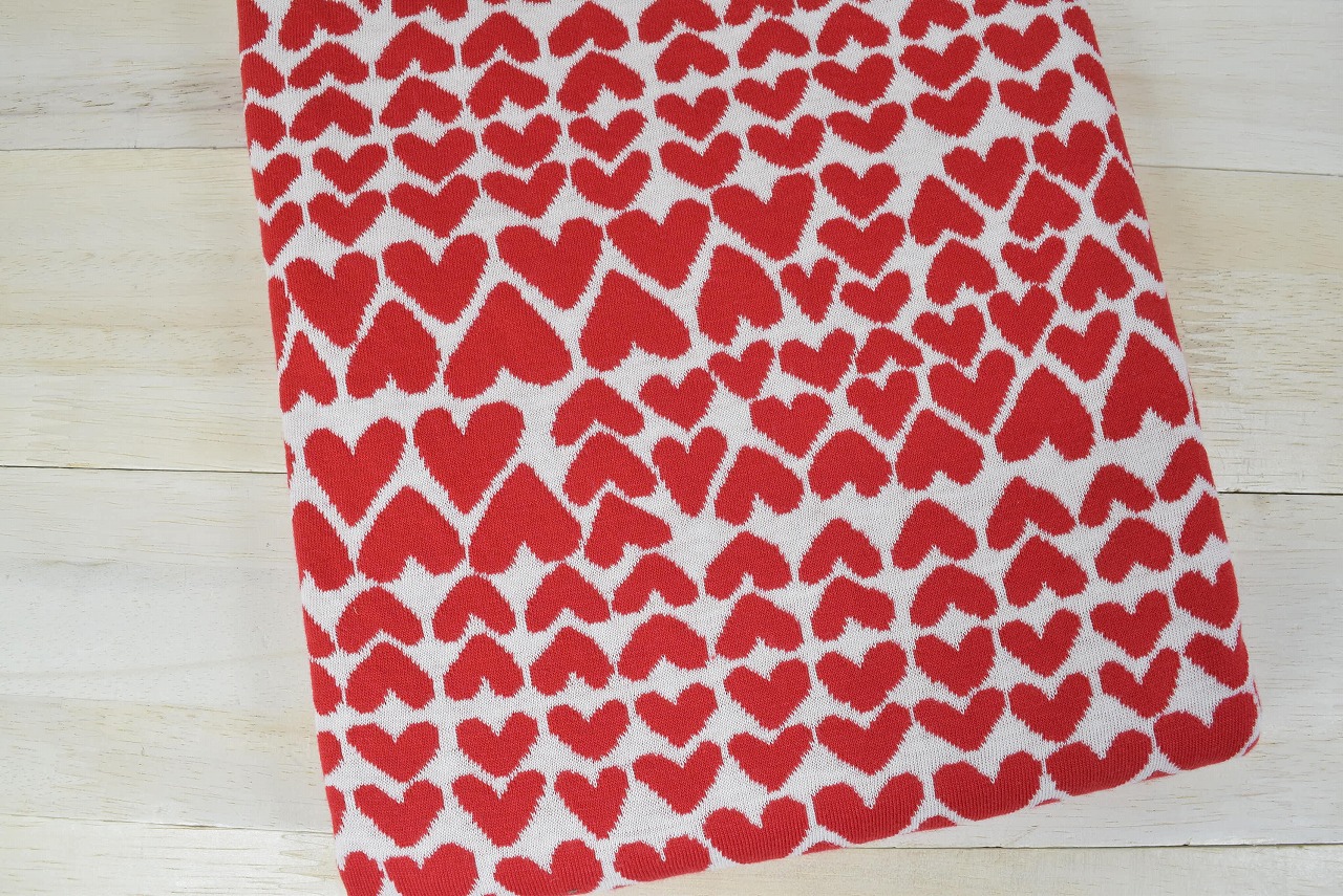 リバーシブルジャガードニット生地 ハートニット柄 色:レッド/アイボリー