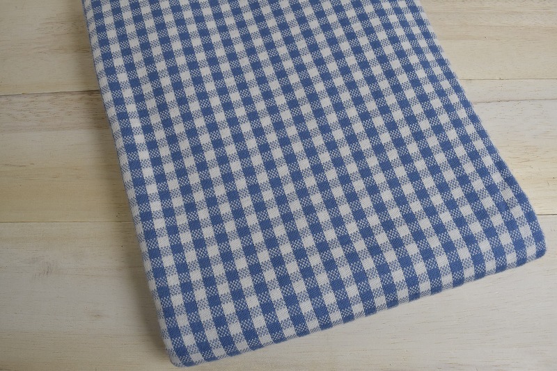 リバーシブルジャガードニット生地 ギンガムチェック柄 色:デニム/アイボリー
