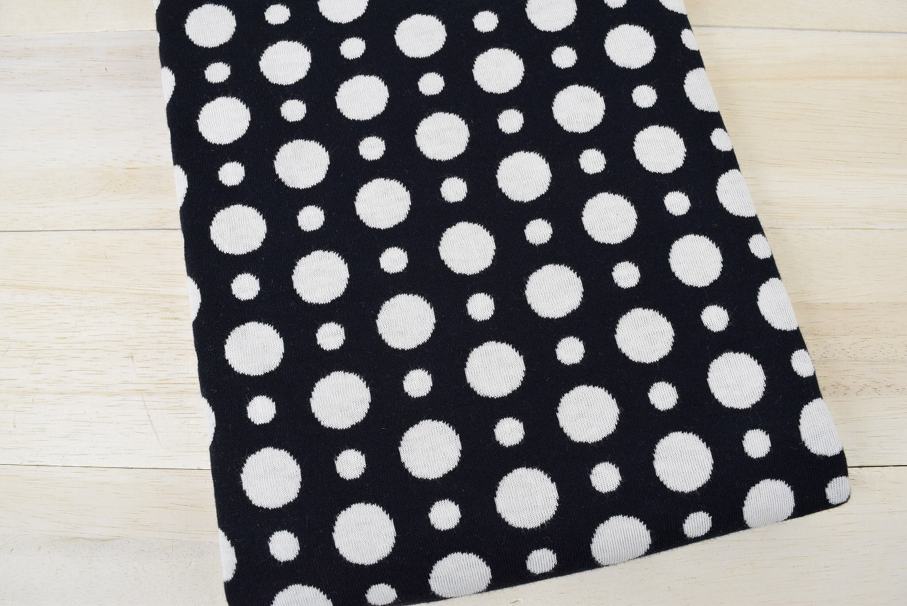 リバーシブルジャガードニット生地 カラフルボンボン柄 色:黒/アイボリー