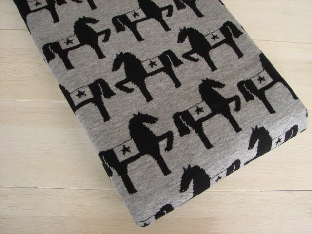 リバーシブルジャガードニット生地 馬柄 色:黒/杢グレー