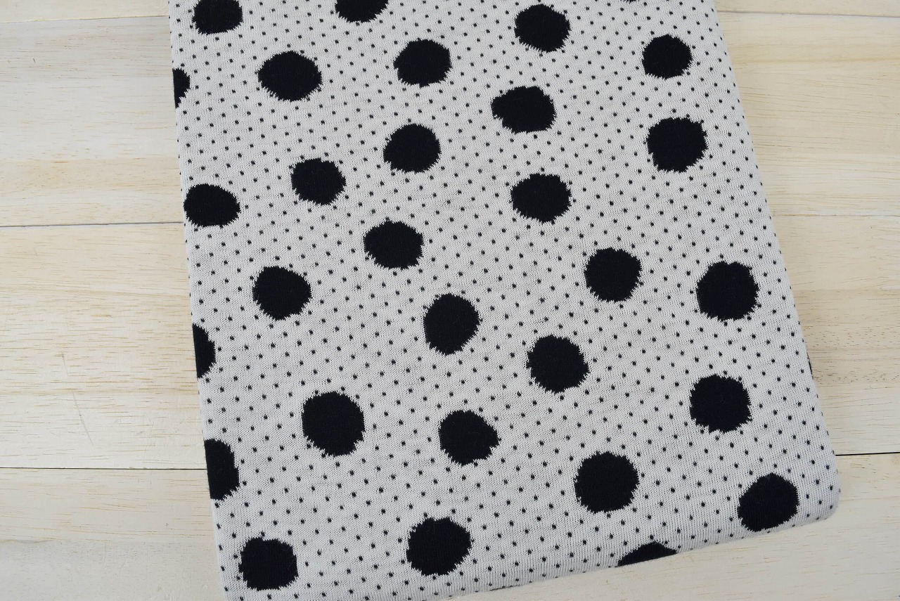 リバーシブルジャガードニット生地 ベーシックドット柄 色:デニム/アイボリー