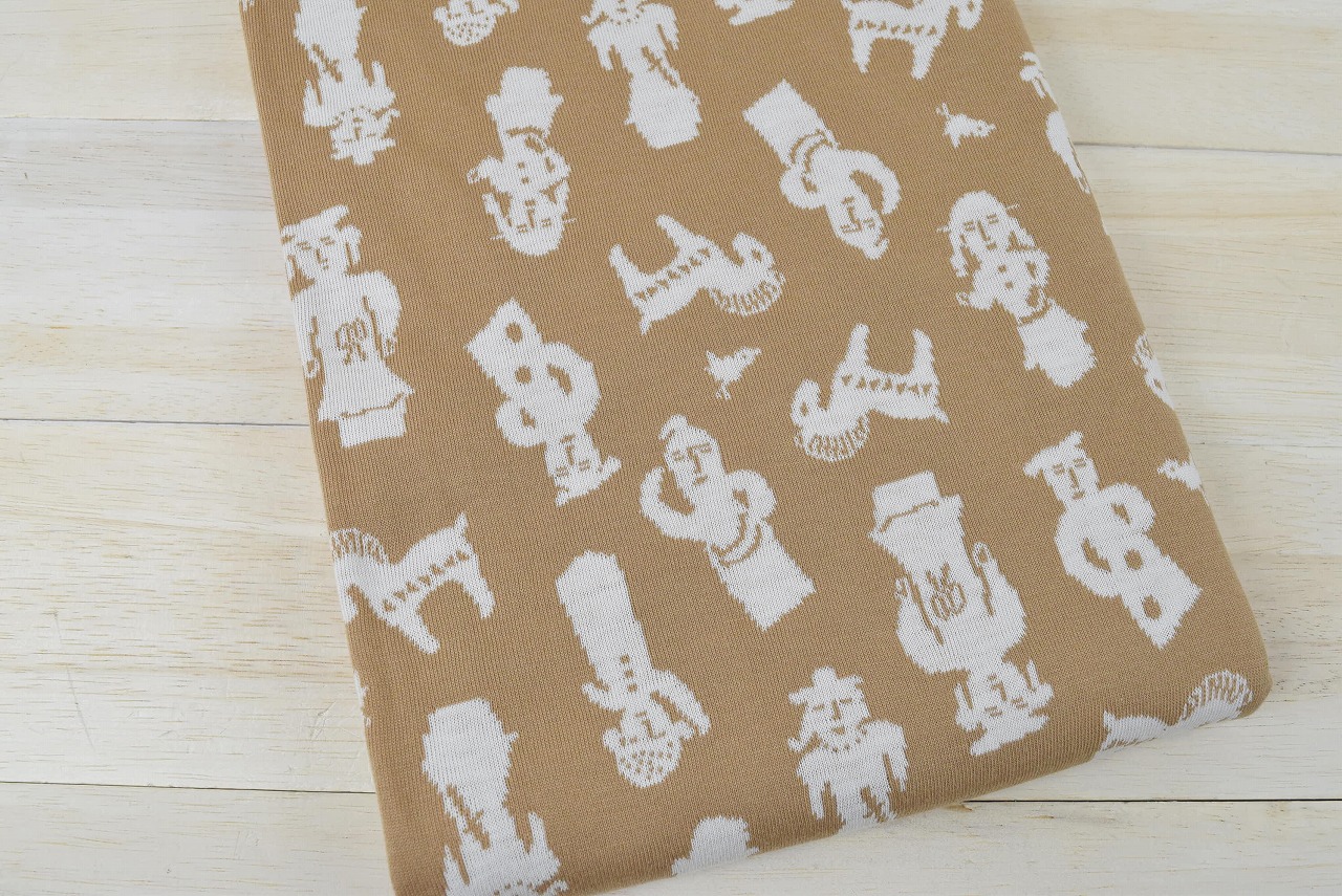 2025年11月下旬以降お届け!予約販売リバーシブルジャガードニット生地 はにわーず柄 色:くるみ/アイボリー