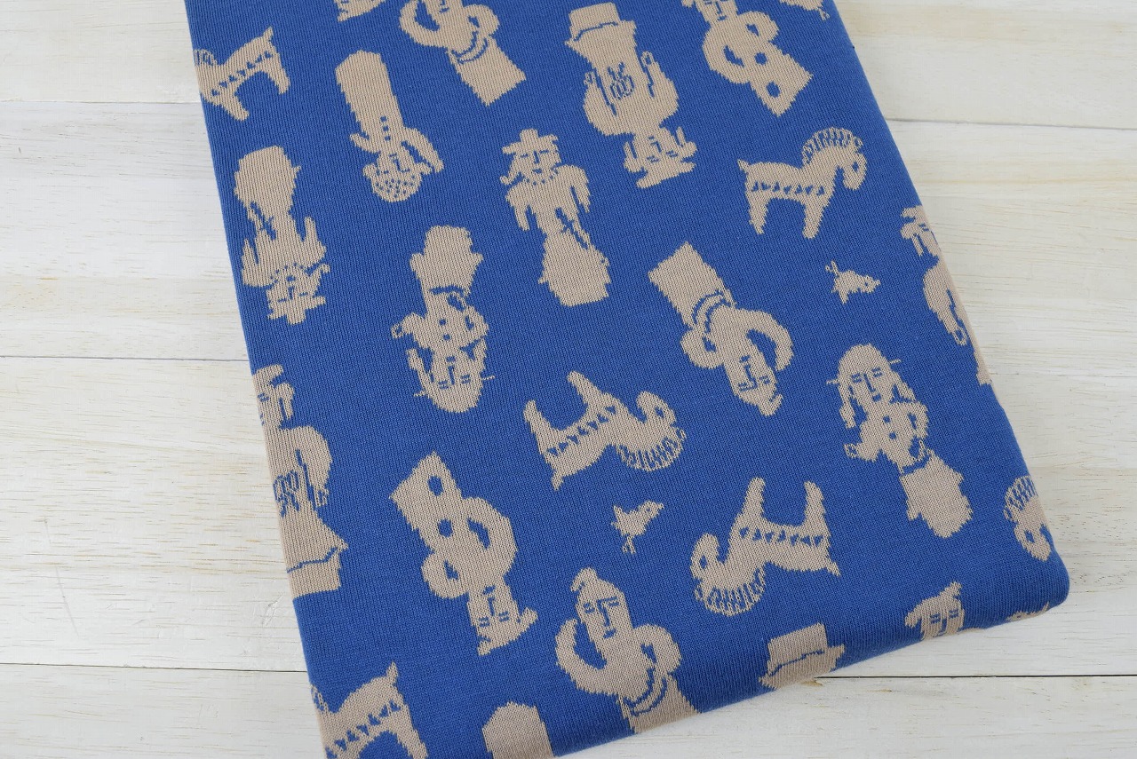2025年11月下旬以降お届け!予約販売リバーシブルジャガードニット生地 はにわーず柄 色:ジェイブルー/キャメル