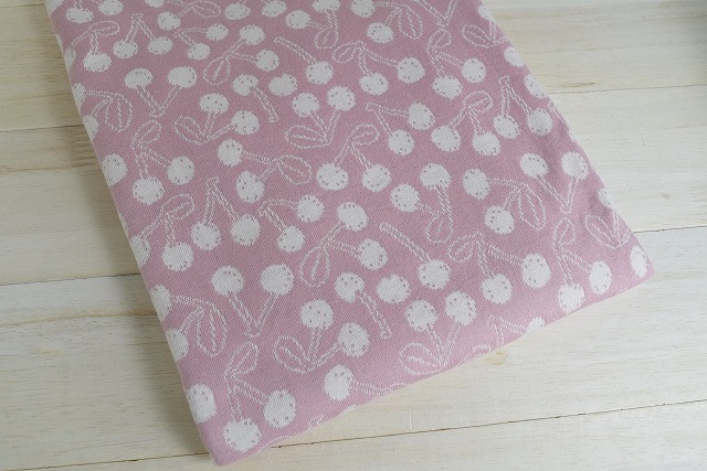 リバーシブルジャガードニット生地 チェリーズ柄 色:フレンチローズ/アイボリー