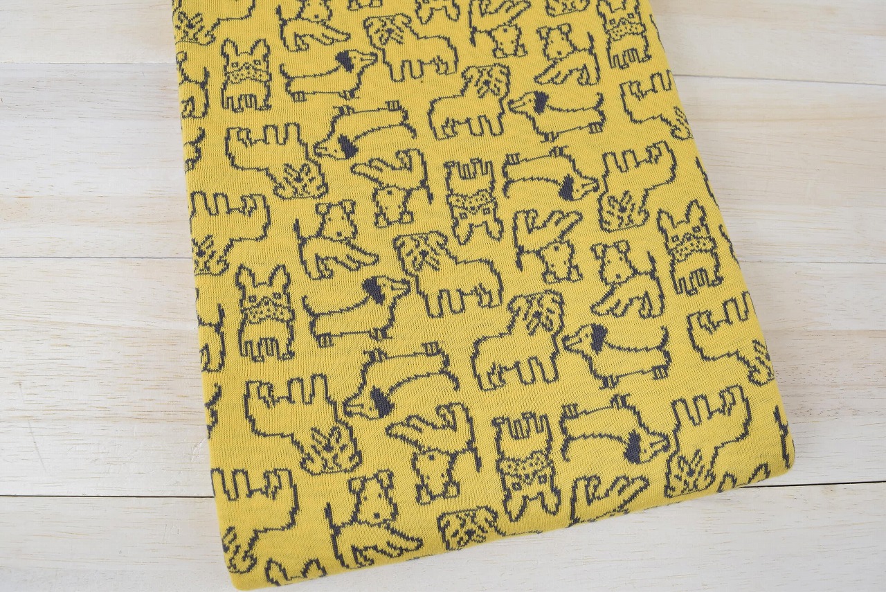 リバーシブルジャガードニット生地 チャムチャム柄 色:チャコール/イエロー