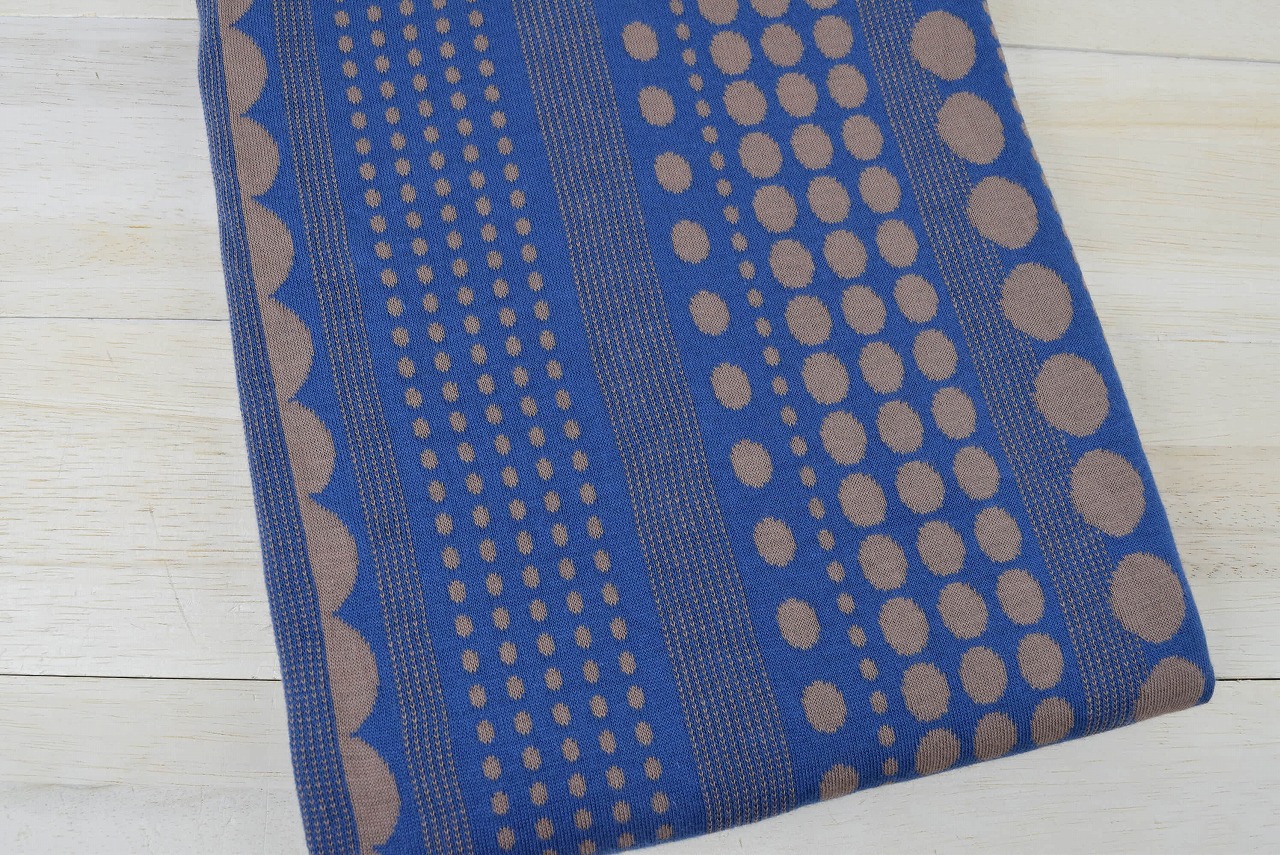 リバーシブルジャガードニット生地 ドットストライプ柄 色:ジェイブルー/ココア