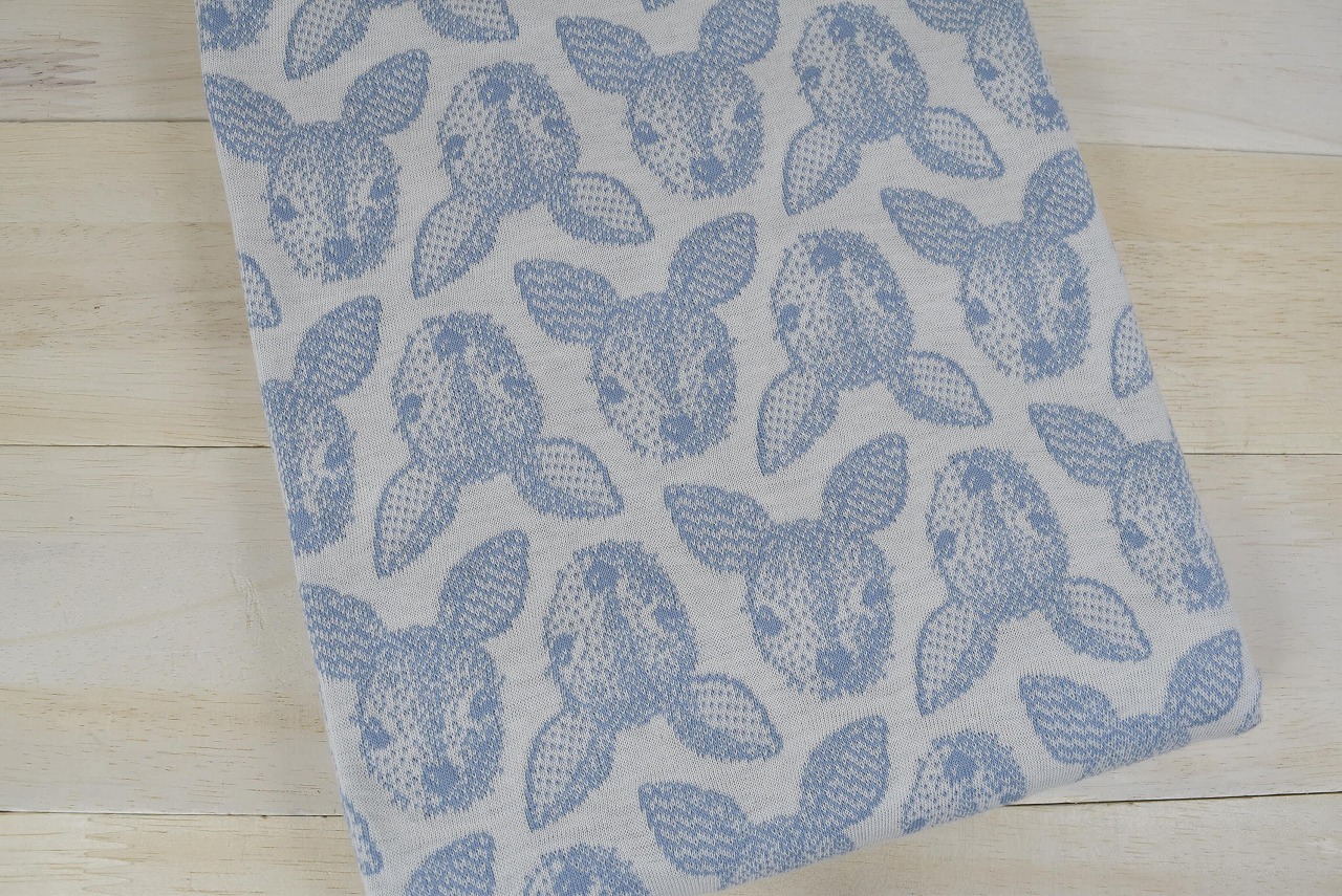 リバーシブルジャガードニット生地 バンビドール柄 色:フラスコ/アイボリー