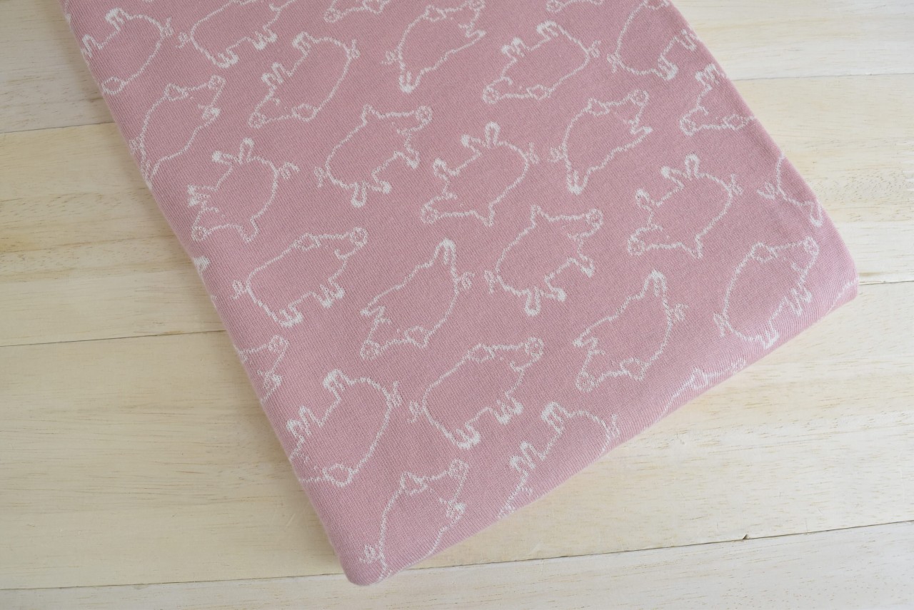 リバーシブルジャガードニット生地 ピグレット柄 色:フレンチローズ/アイボリー
