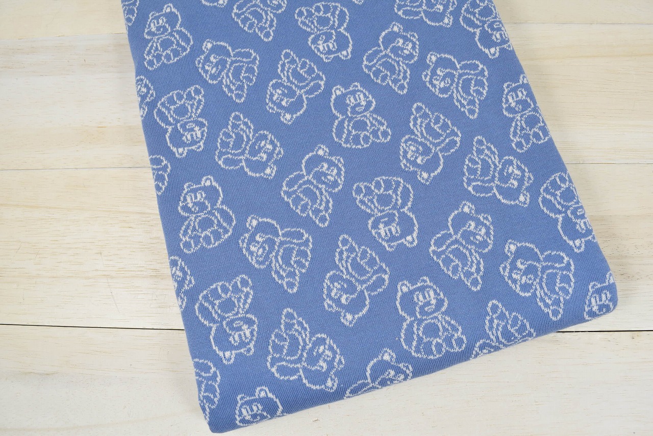 リバーシブルジャガードニット生地 ハグベア柄 色:デニム/アイボリー