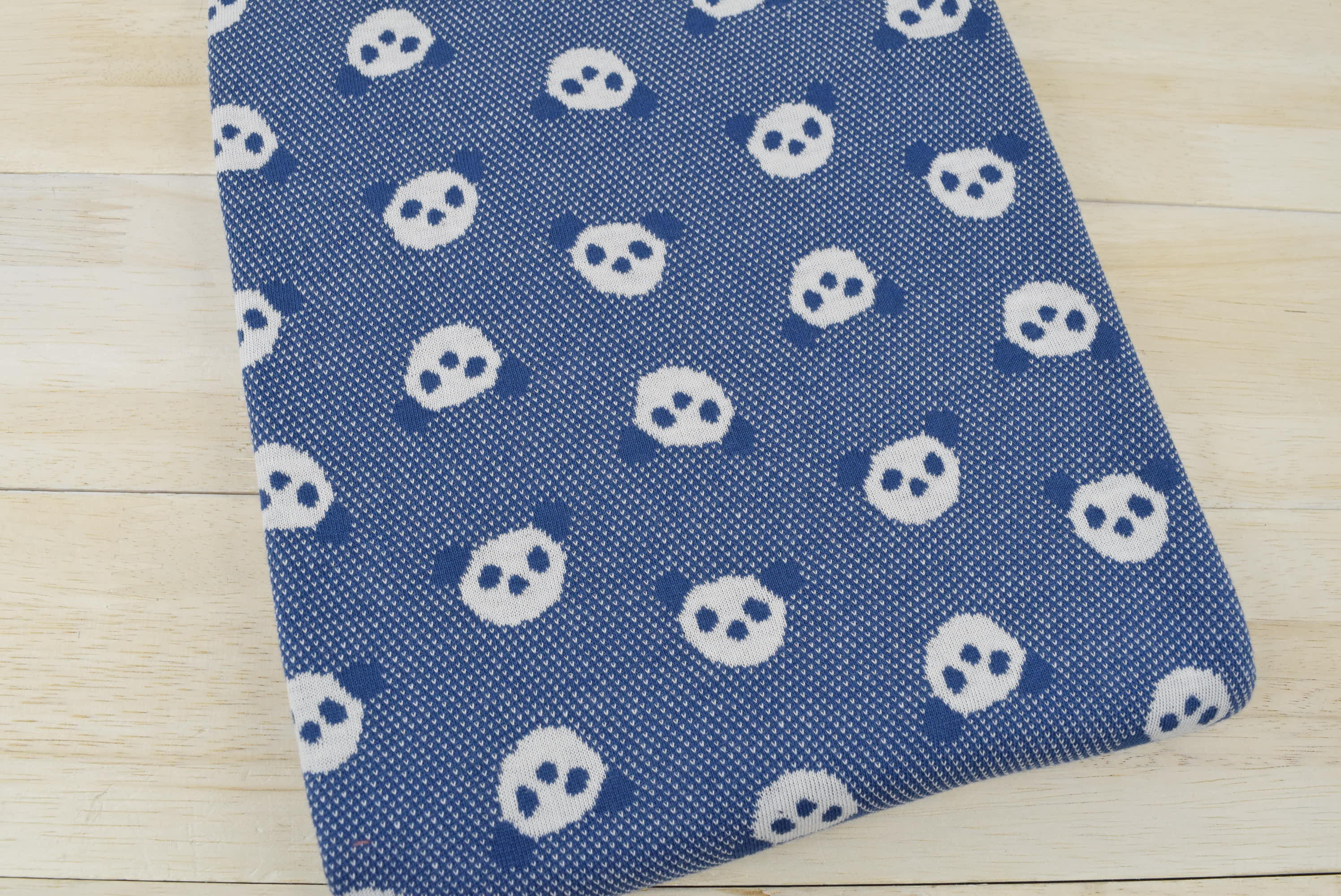 リバーシブルジャガードニット生地 キャンディパンダ柄 色:ジェイブルー/アイボリー