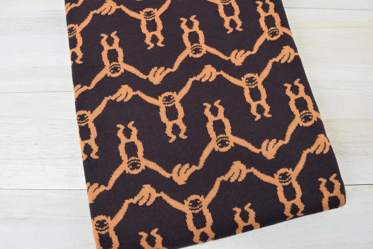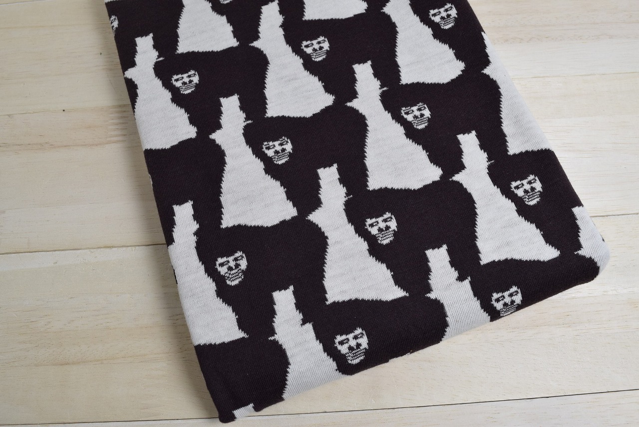 リバーシブルジャガードニット生地 ゴリラ柄 色:ダークブラウン/アイボリー