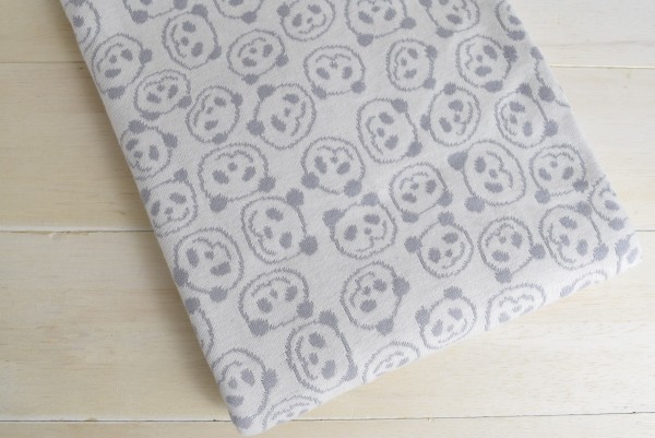 リバーシブルジャガードニット生地 スマイルパンダ柄 色:アッシュ/アイボリー