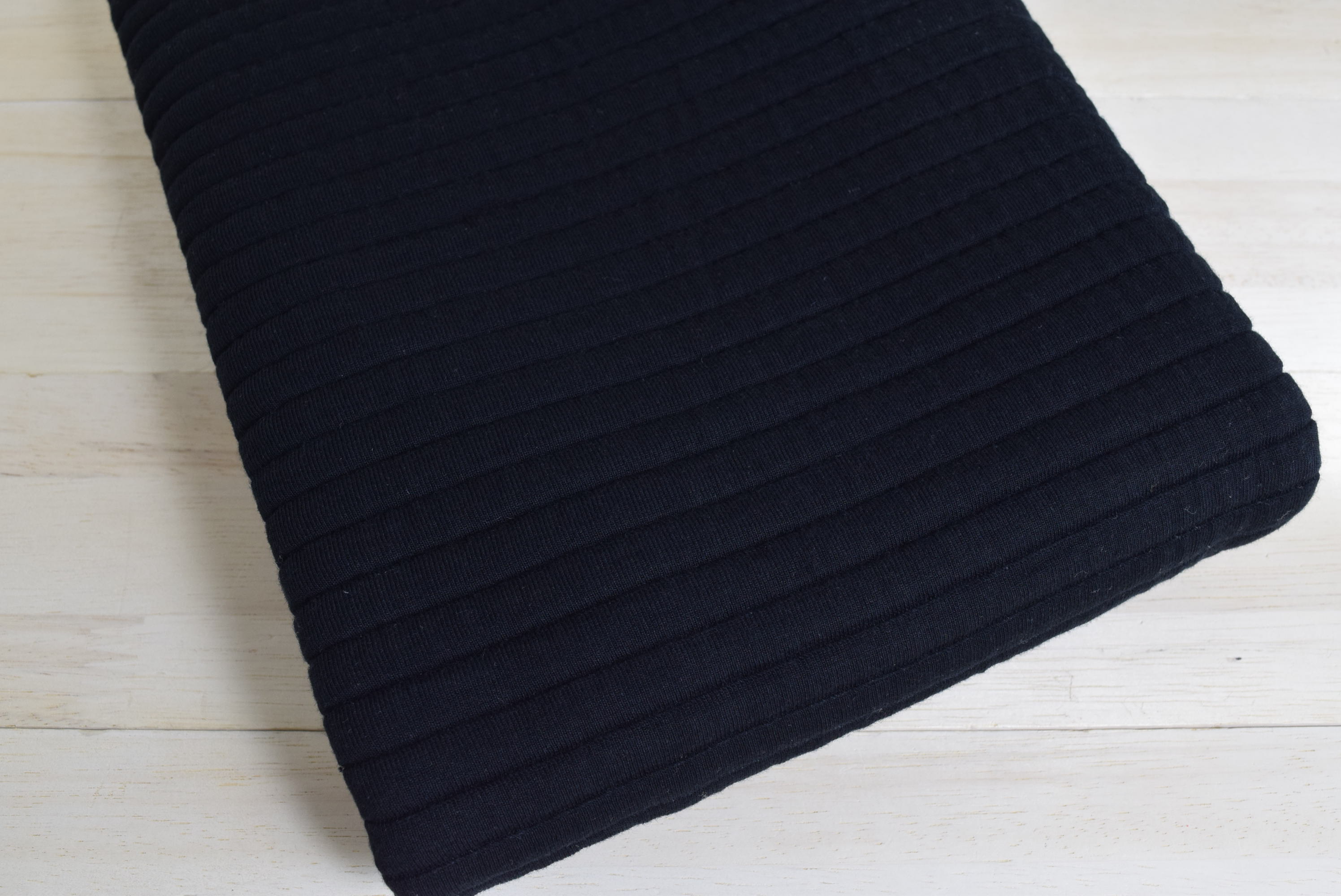 リバーシブルジャガードキルトニット生地 キルトピステ柄 色:黒/ネイビー