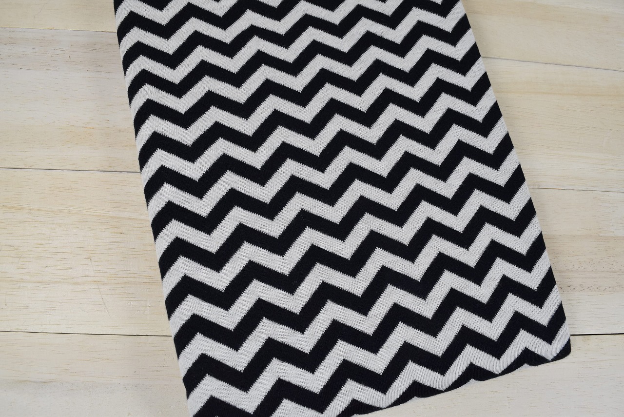 リバーシブルジャガードニット生地 ジグザグステッチ柄         色:黒/アイボリー